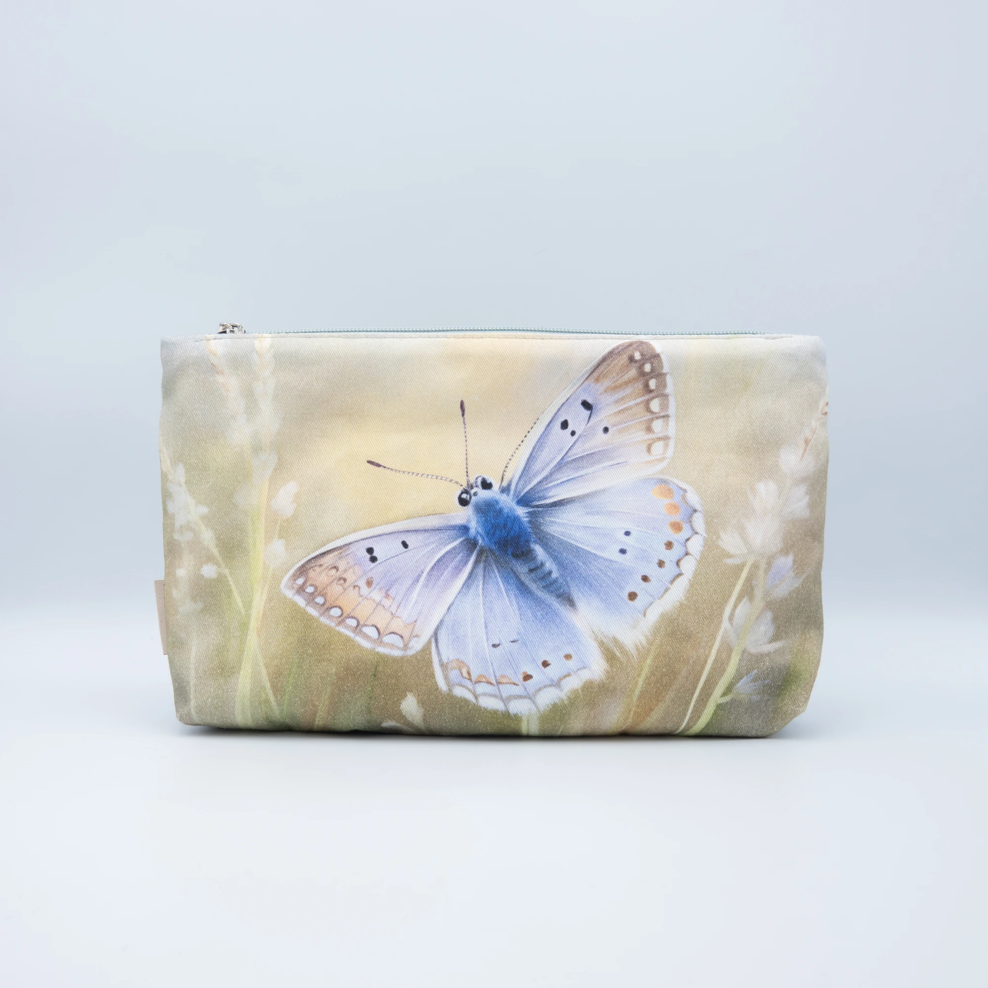 Bawełniana saszetka kosmetyczka z niebieskim motylem (Ikar Modraszek)