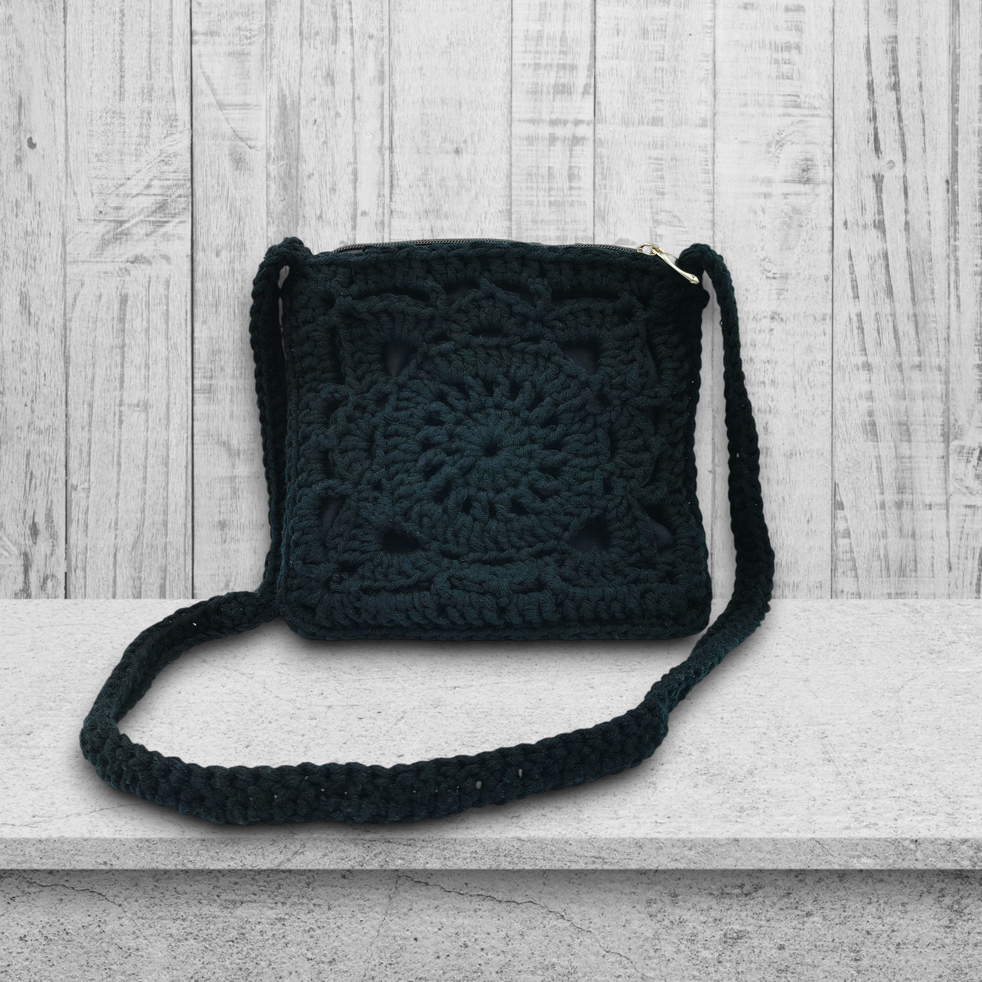 Czarna torebka na szydełku