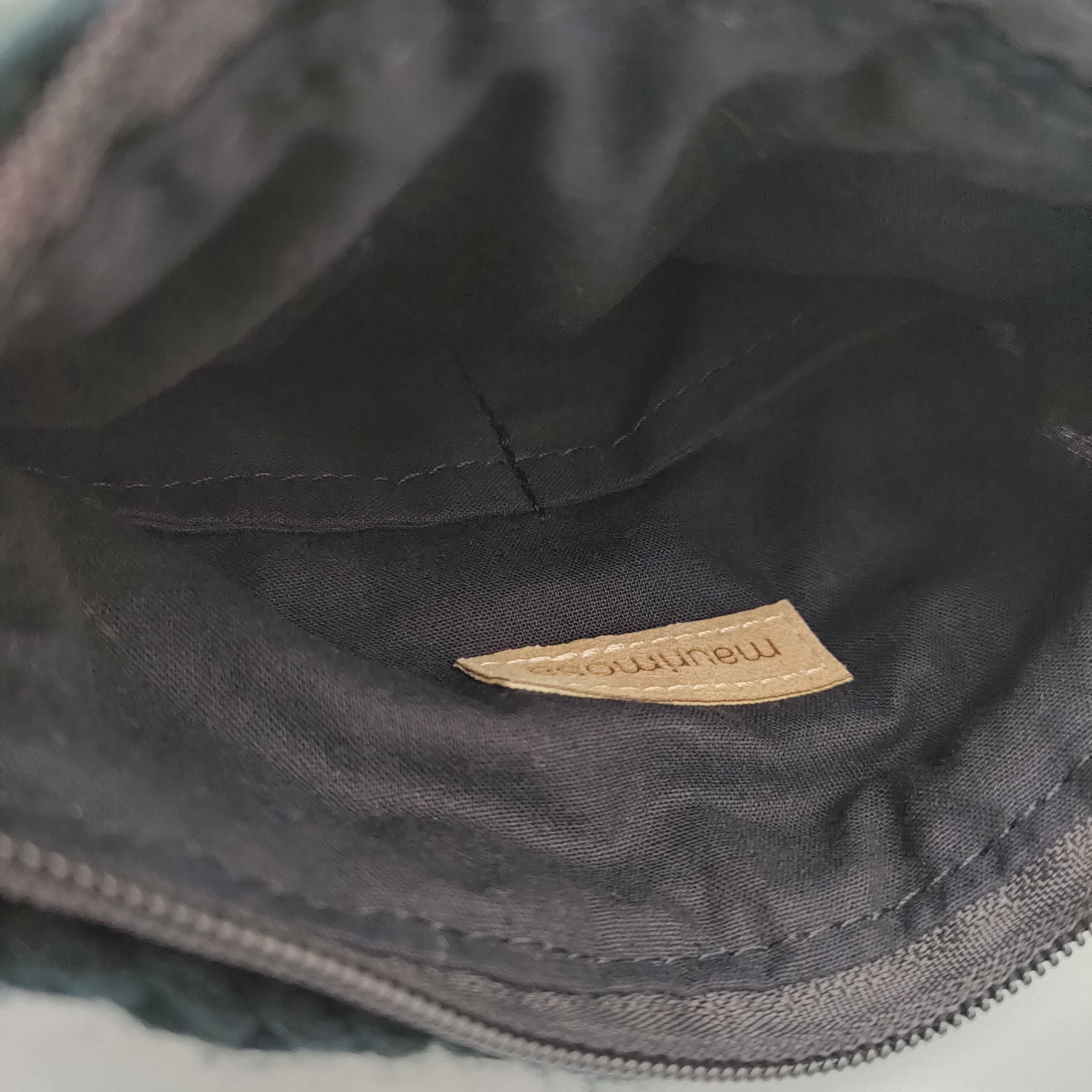 Torebka ręcznie robiona na szydełku. Zamykana na zamek, z bawełnianą podszewką i dwoma kieszonkami w środku.