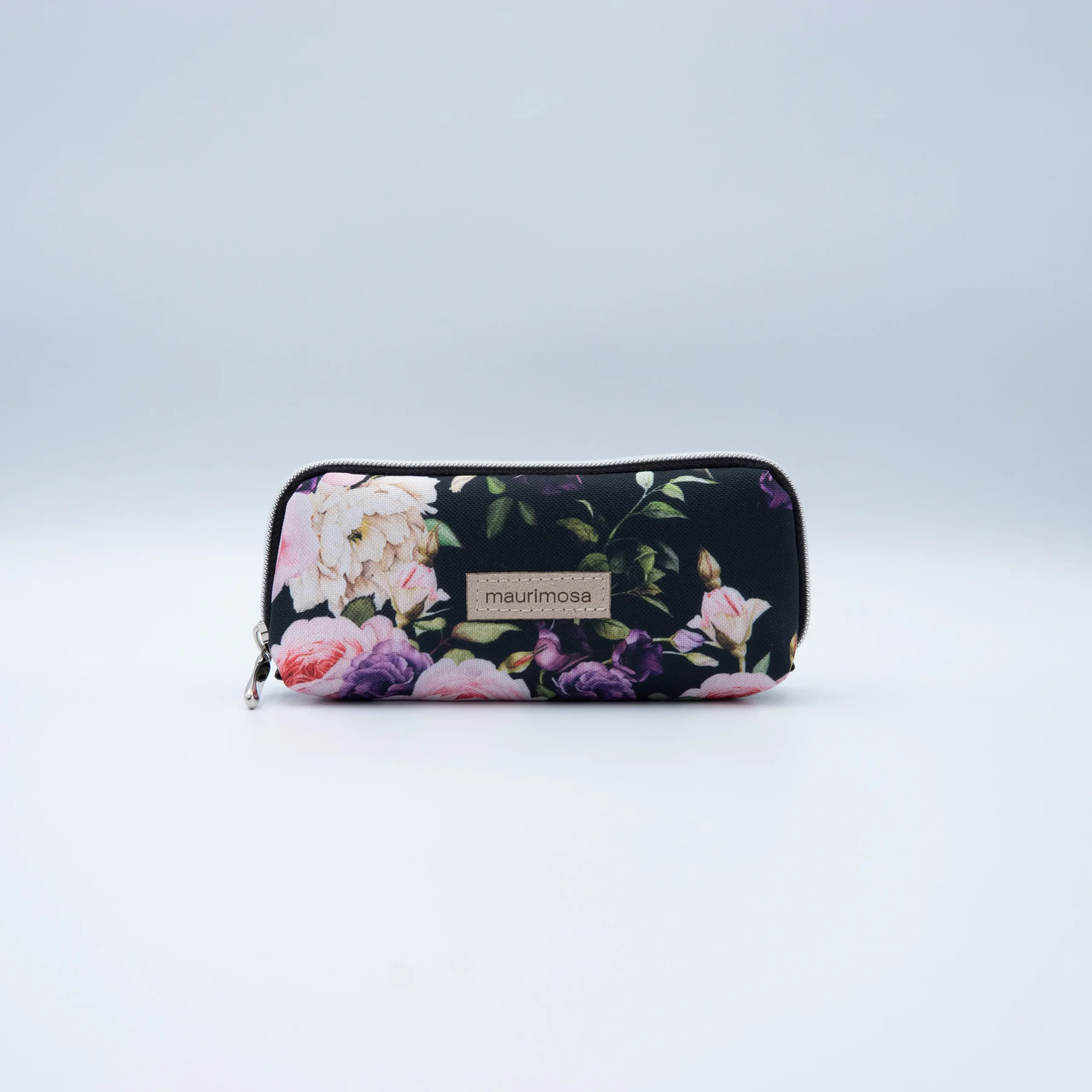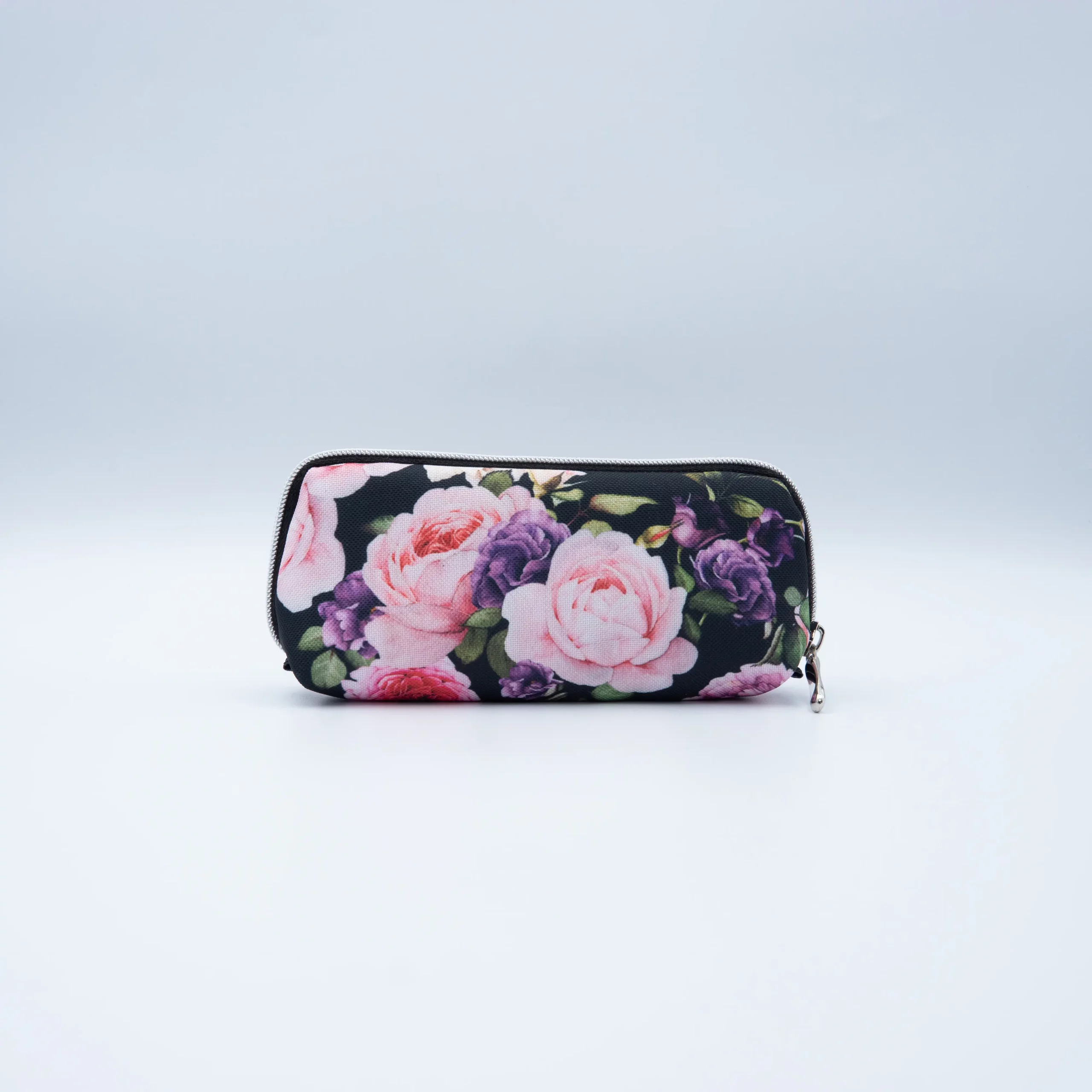 Etui na okulary w jasnoróżowe i kremowe róże ze srebrnym zamkiem
