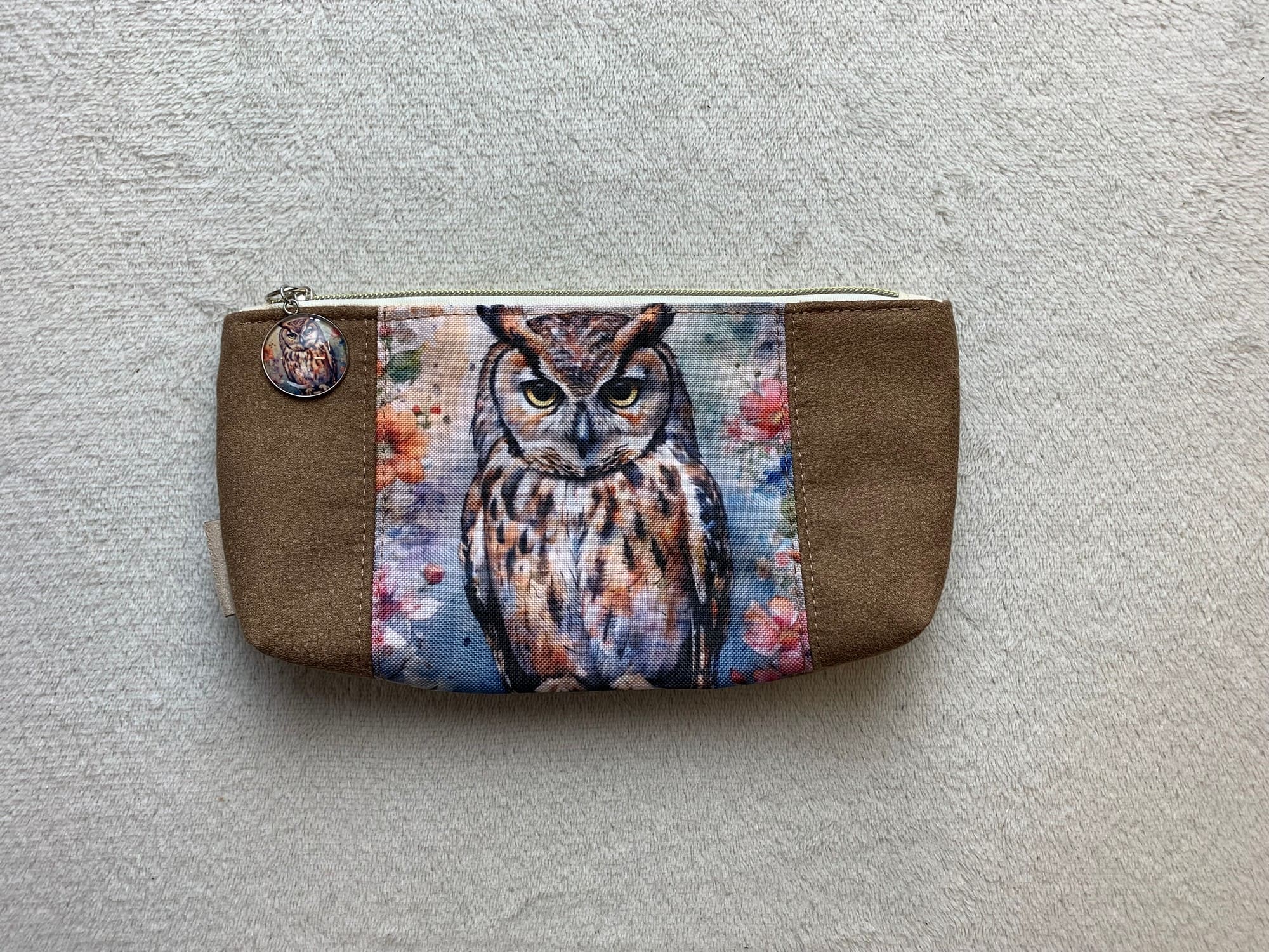 Kosmetyczka piórnik saszetka z sową – kolor brązowy