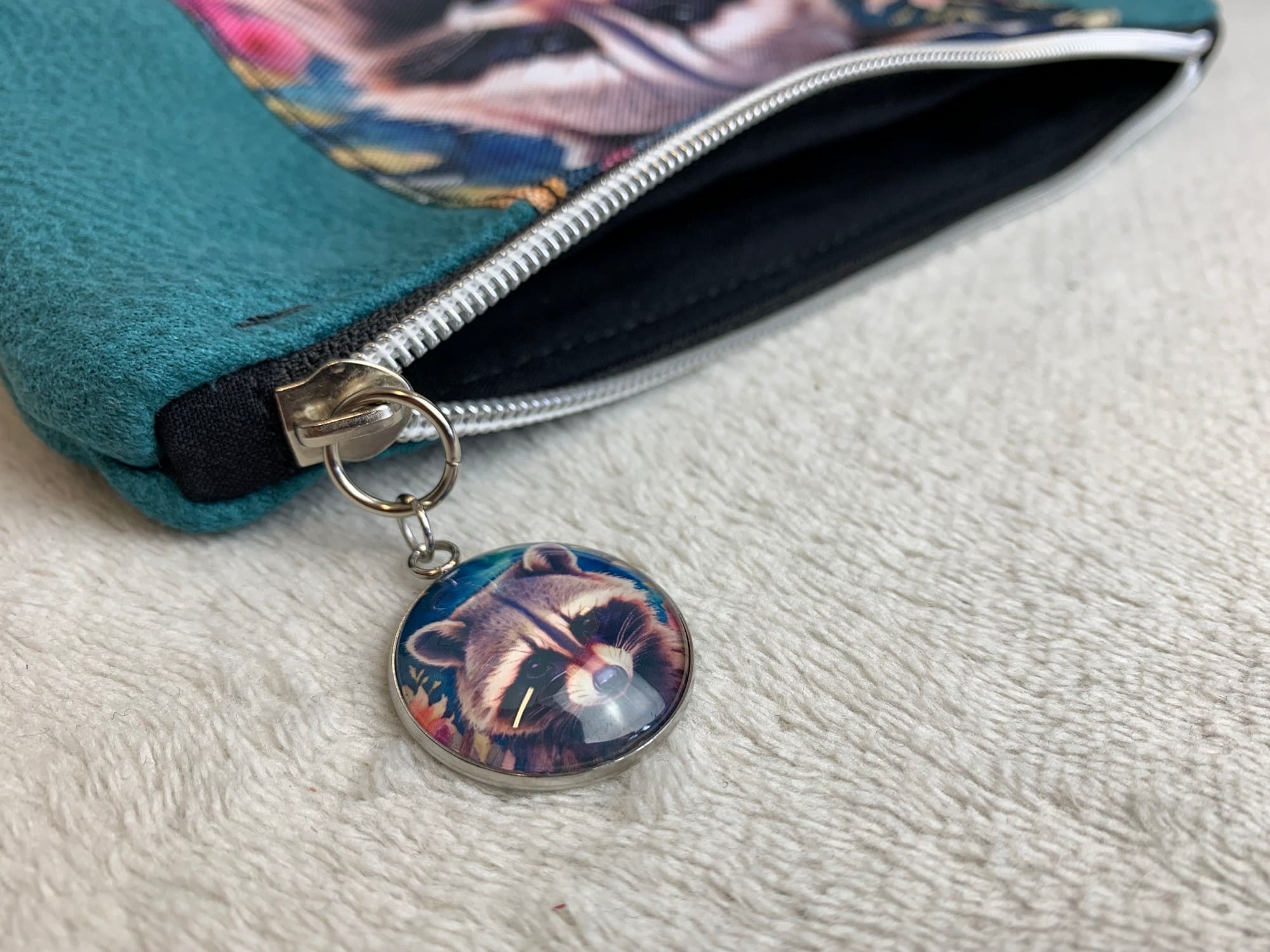 Kosmetyczka piórnik saszetka z szopem praczem – kolor turkusowy