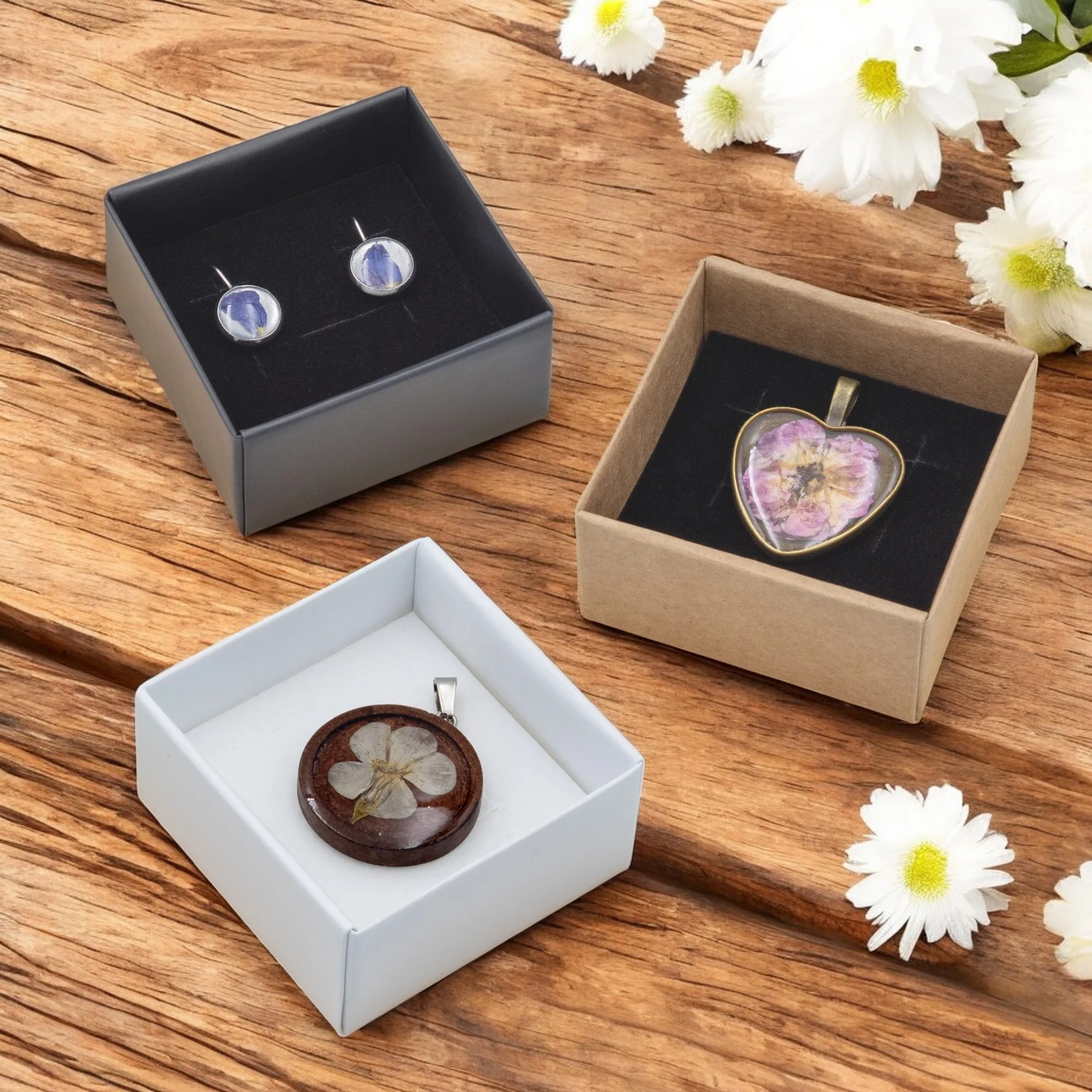 Aby biżuteria była gotowa do wręczenia jako prezent wystarczy wybrać kolor pudełka, a my zajmiemy się resztą! Bezpiecznie ułożymy biżuterię w pudełeczku i zapakujemy, owijając pasującą kolorystycznie wstążką.