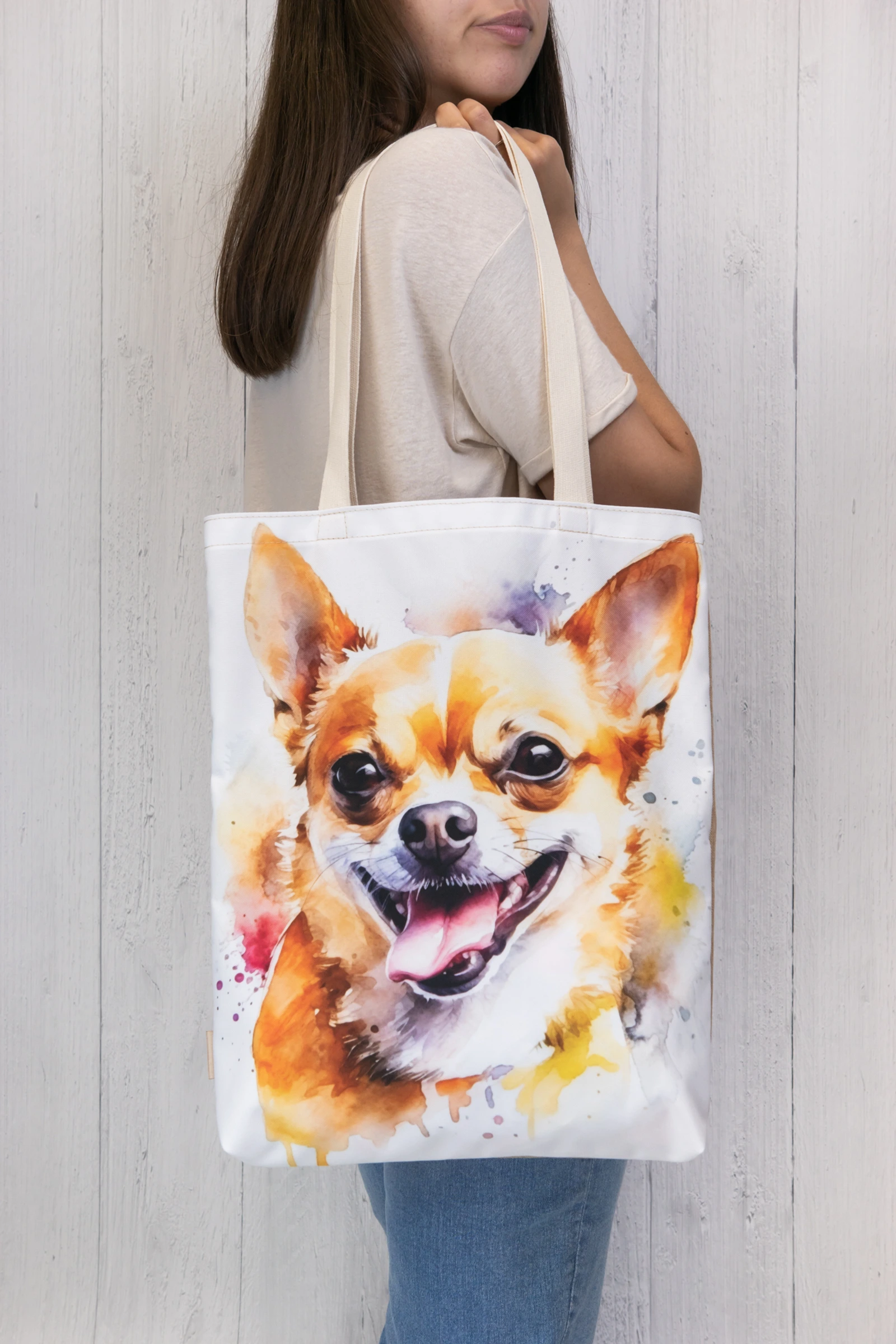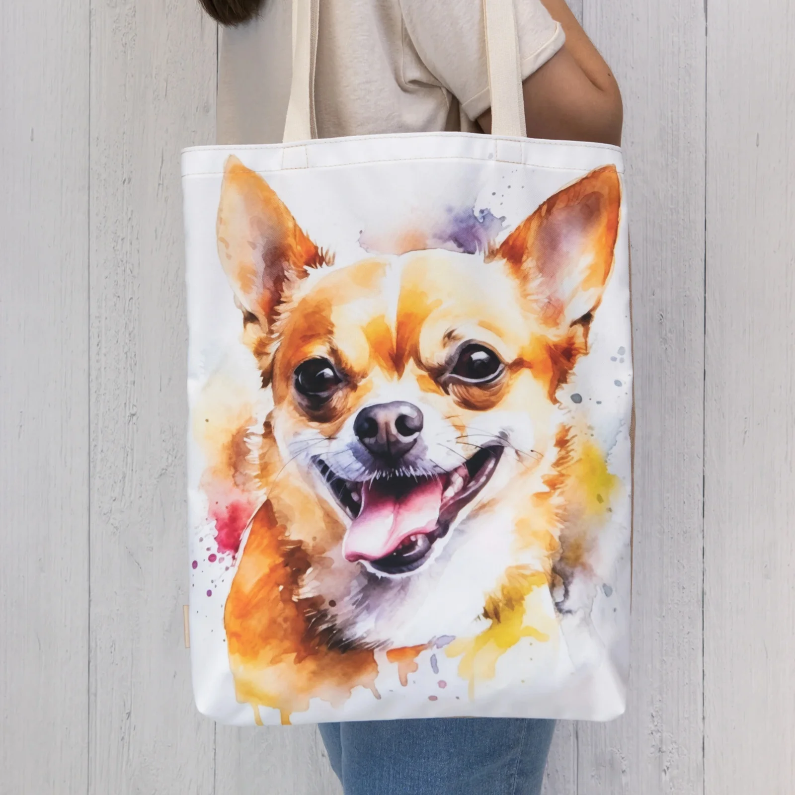 Wodoodporna torba na ramię z uroczą grafiką przedstawiającą psa rasy Chihuahua sprawi radość miłośnikom psów!